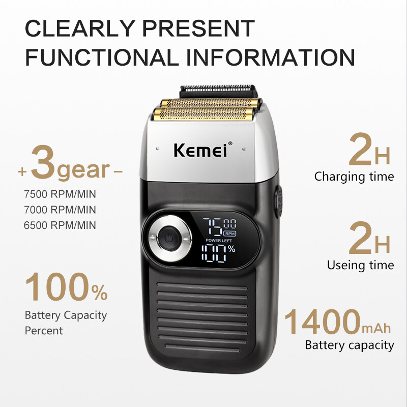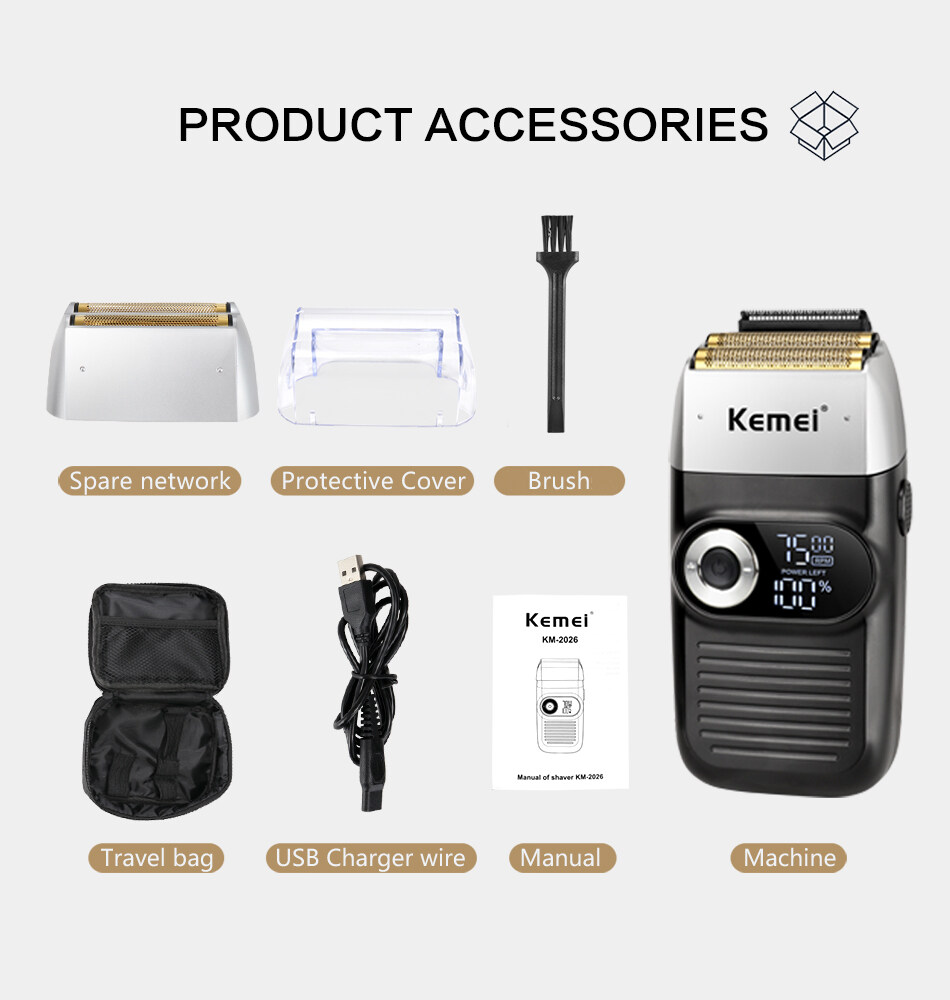 Kemei 2026 2 in 1 Rechargeable Electric Shaver LCD Display Portable Cordless Men Reciprocating Razor Beard 0mm Hair Trimmer