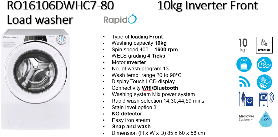 (Bulky) CANDY RO16106DWMCE-80 10KG FRONT LOAD INVERTER WASHING MACHINE