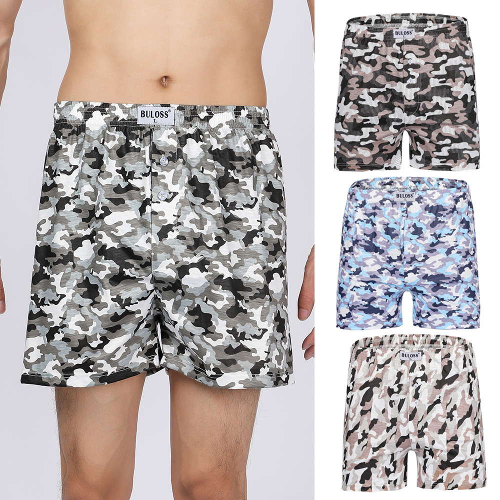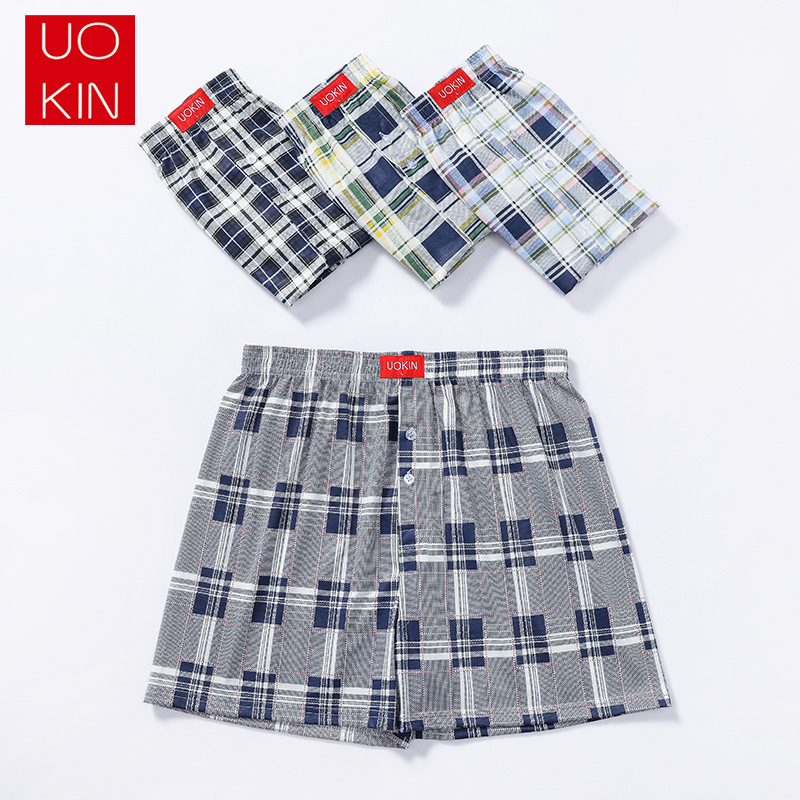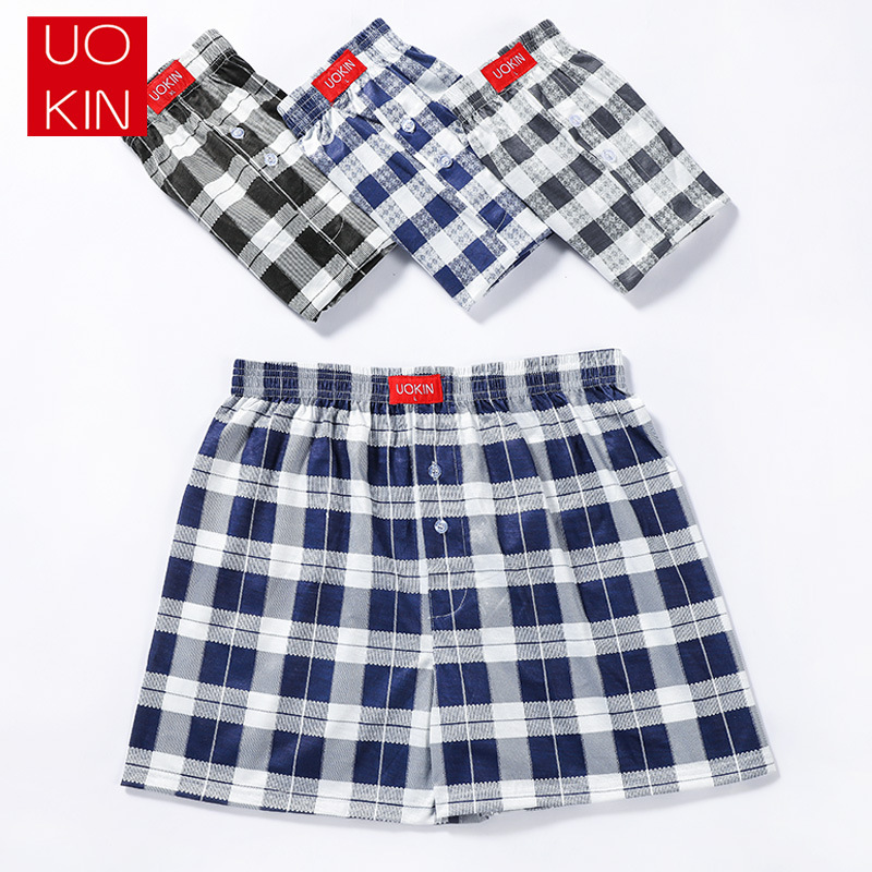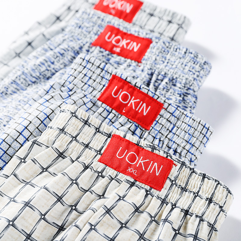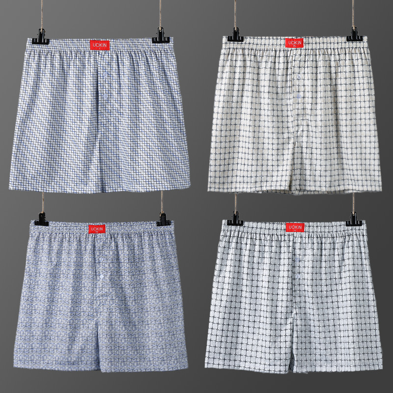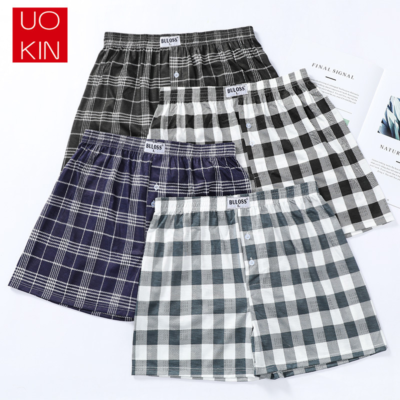 (SG Seller) 4 Pcs Men Plaid Printing Loose Boxer Casual Shorts Arrow Pants Pajamas Home Wear Wide Led Elastic Waist Breathable Underwear Plus Size Sleep wear Underpants