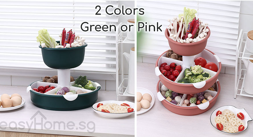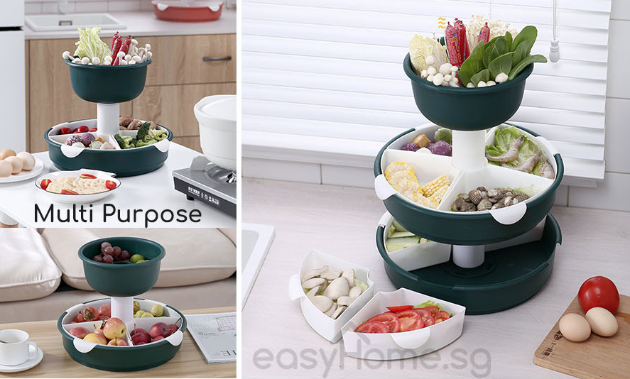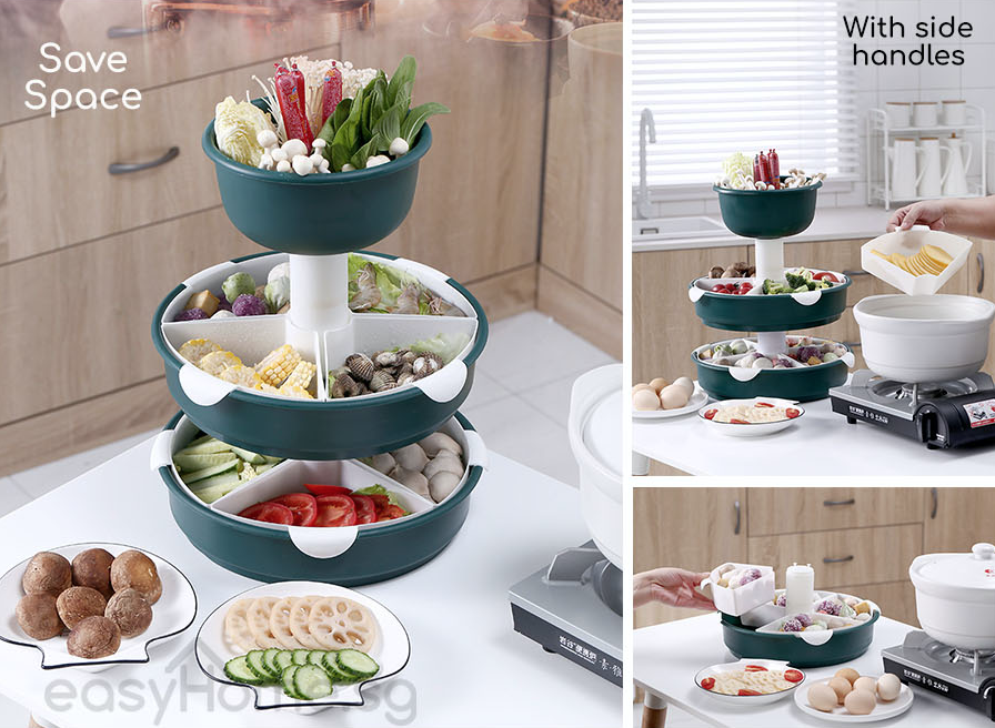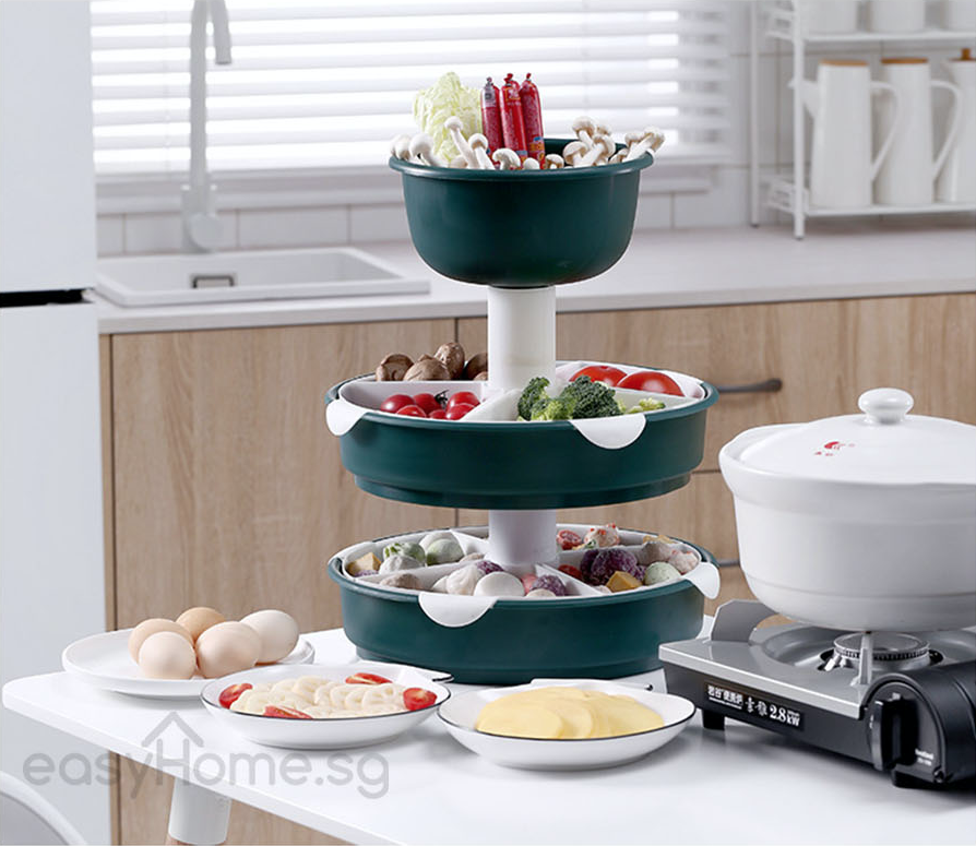 Steamboat Food Organiser / Hot Pot Storage Organizer / Drainage Holes/ Save Space/ 360 Degree Spin