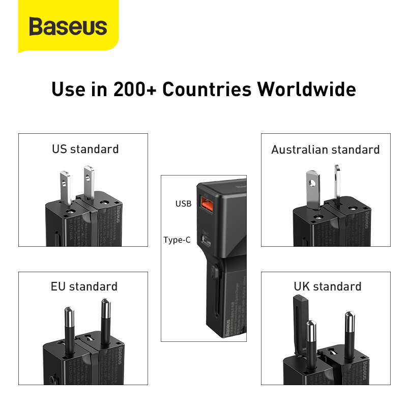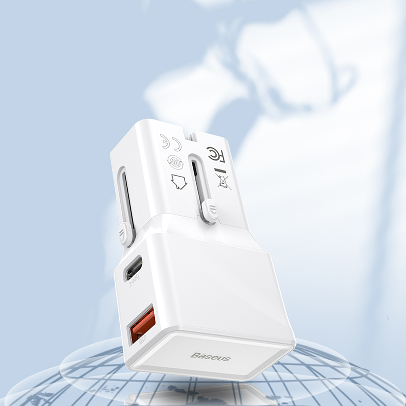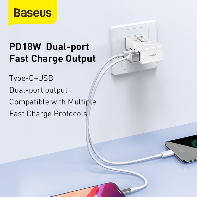 Baseus 18W Universal Travel Adapter Conversion Plug PPS Charger Type-C + USB-A 18W QC3.0 PD3.0 USB Quick Charger Youth Edition