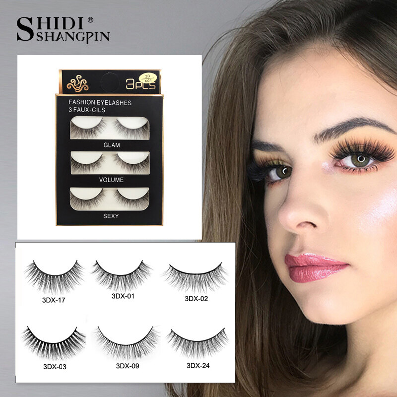 SHIDISHAGNPIN Fake Eyelash with Glue 3 Pairs of Popular False Eyelashes Natural Soft Lashes