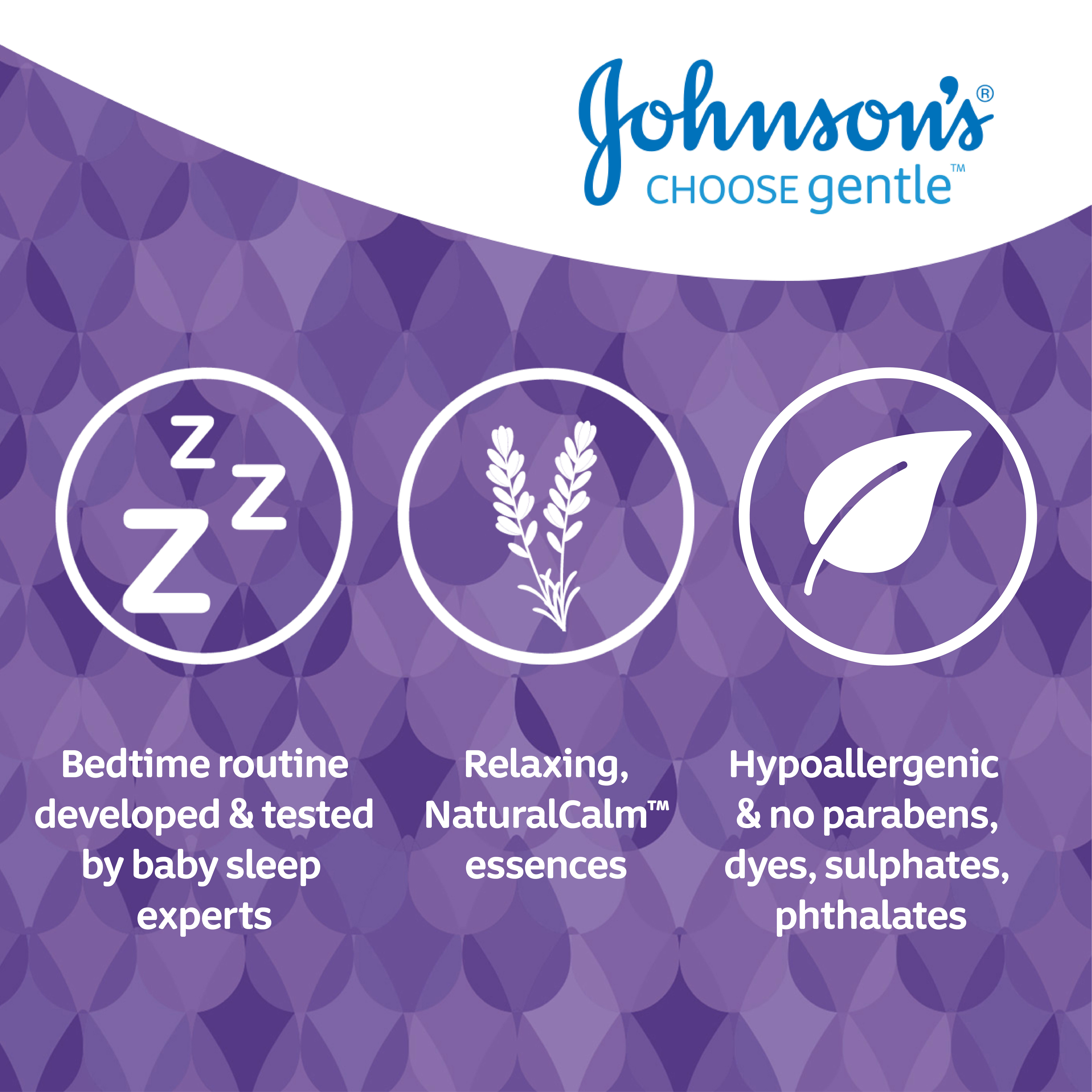 Johnson's® Bedtime™ baby bath with NaturalCalm® essence, clinically proven to help calm and comfort baby before sleep*