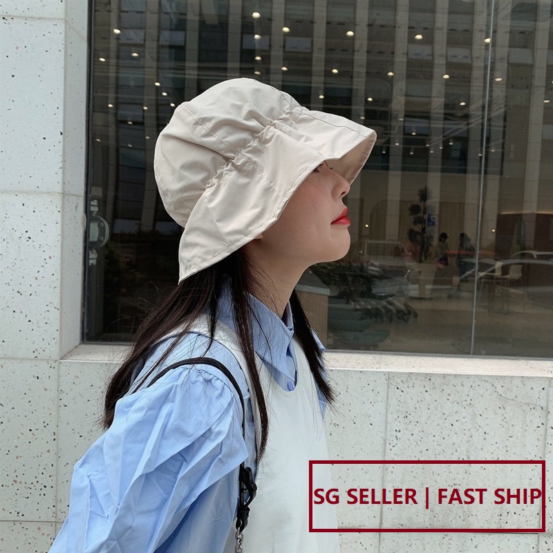 [SG?Sun protection] Japan Style Foldable Bucket Hats for Women Summer Casual Water Repellency Brim Cotton Bucket Hat Daily Wear Accessories
