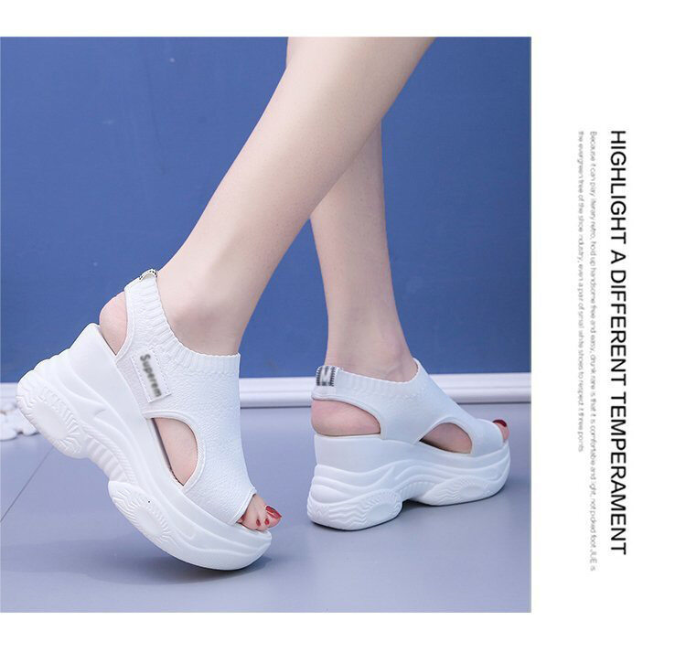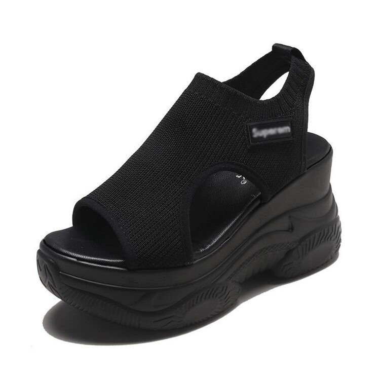 Croc summer new style flying woven thick-soled wedge fish mouth sports sandals female Korean version of the platform casual sandals