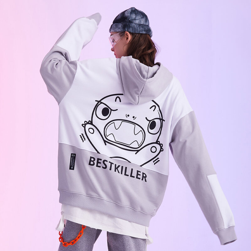 BTK Joint Name Spring and Autumn Fashion Brand Little Monster Hooded Sweater Men's Contrast Color Hoodie Couple Loose National Fashion Ins Coat