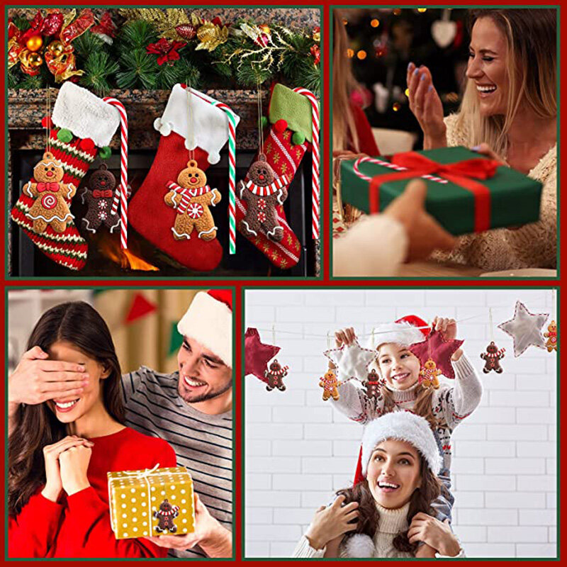 1 Set Christmas Cute Gingerbread Man Pendant/ Charm Christmas Ornaments/ Deer Snowman Xmas Tree Hanging Decoration