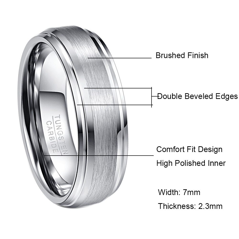 BONLAVIE Men's 7mm 100% Real Tungsten Carbide Ring Matte Finish Wedding Engagement Band