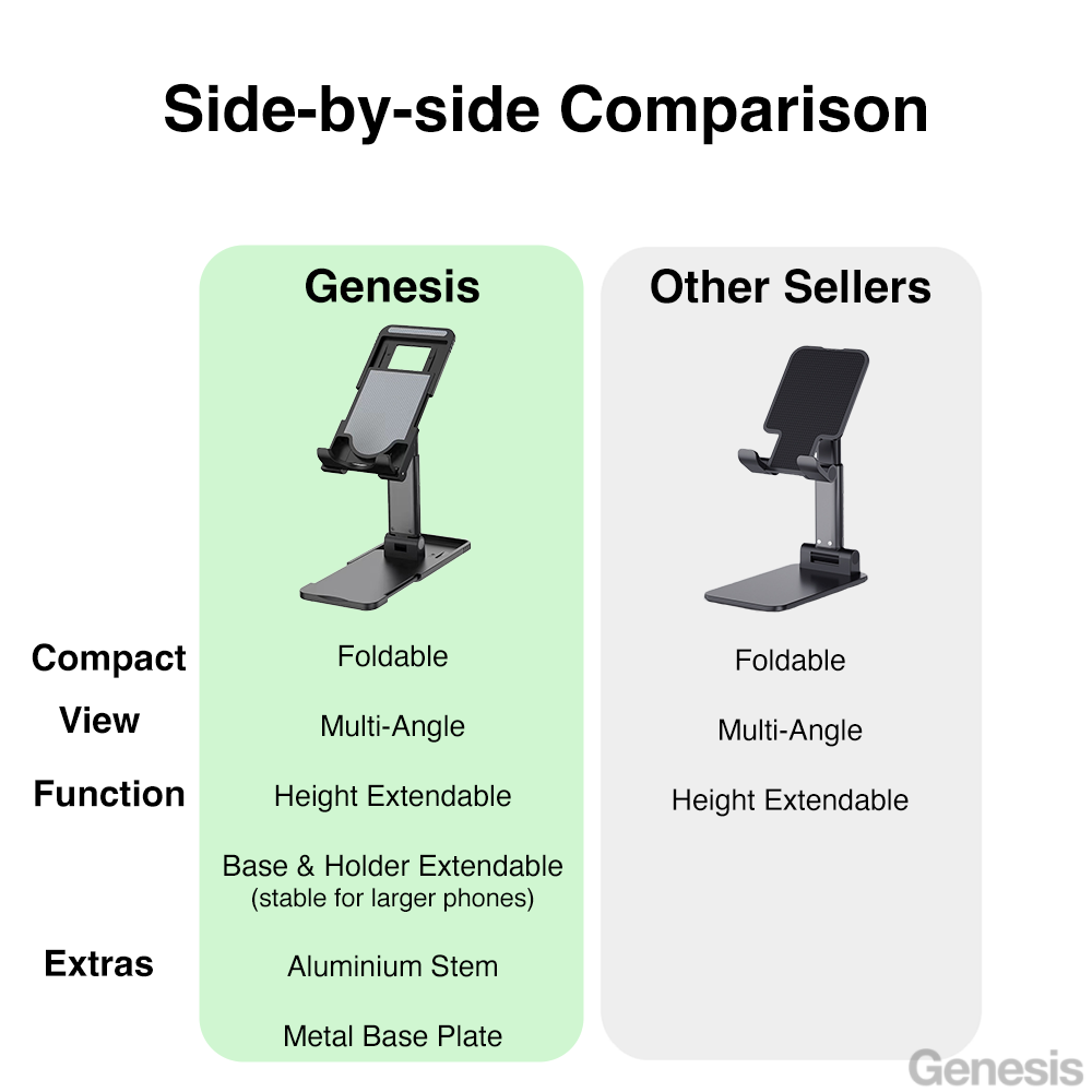 Genesis Phone Stand Holder w Foldable & Adjustable, Portable for Universal Mobile Handphone Tablet