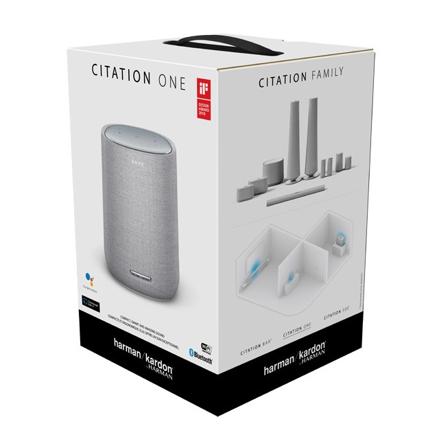 Beautiful Sound That Speaks To YouThe Harman Kardon Citation ONE is a next generation smart speaker with rich sound and an all-in-one compact design. Easy to use, Citation ONE blends innovation in home audio with attention to detail in design, allowing for sophisticated looks and surprising sound in a compact design. Music lovers will love the room-filling sound and access to over 300 music services and high-definition streaming through Chromecast built-in. The Google Assistant brings convenient voice control to your Citation ONE for hands-free help around the home. Get answers, play music, organize your day, control your smart home, enjoy your entertainment and more, just with your voice!Specifications:• Model Name: Citation ONE• Transducer: 1 x 20mm tweeter, 1 x 89mm woofer• Output power: 40W RMS• Signal-to-noise ratio: >80dB• Power Supply: 100–240V – 50/60Hz• Bluetooth® version: 4.2• Bluetooth transmitter frequency range: 2402 – 2480MHz• Bluetooth transmitter power: <5dBm• Bluetooth transmitter modulation: GFSK, π/4 DQPSK, 8DPSK • Wireless network: 802.11 a/b/g/n/ac (2.4GHz/5GHz)• 2.4G Wi-Fi transmitter frequency range: 2412 – 2472MHz (2.4GHzISM Band, USA 11 Channels, Europe and others 13 Channels)• 2.4G Wi-Fi transmitter power: <20dBm• 2.4G Wi-Fi modulation: DBPSK, DQPSK, CCK, QPSK, BPSK, 16QAM,64QAM• 5G Wi-Fi transmitter power: <23dBm• 5G Wi-Fi modulation: QPSK, BPSK, 16QAM, 64QAM, 256QAM• 5G Wi-Fi transmitter frequency range: 5.15 – 5.35GHz, 5.470 – 5.725GHz, 5.725 – 5.825GHz• Supported audio formats: HE-AAC, LC-AAC, MP3, Vorbis, WAV (LPCM), FLAC, OpusSpecifications:• Model Name: Citation ONE• Transducer: 1 x 20mm tweeter, 1 x 89mm woofer• Output power: 40W RMS• Signal-to-noise ratio: >80dB• Power Supply: 100–240V – 50/60Hz• Bluetooth® version: 4.2• Bluetooth transmitter frequency range: 2402 – 2480MHz• Bluetooth transmitter power: <5dBm• Bluetooth transmitter modulation: GFSK, π/4 DQPSK, 8DPSK • Wireless network: 802.11 a/b/g/n/ac (2.4GHz/5GHz)• 2.4G Wi-Fi transmitter frequency range: 2412 – 2472MHz (2.4GHzISM Band, USA 11 Channels, Europe and others 13 Channels)• 2.4G Wi-Fi transmitter power: <20dBm• 2.4G Wi-Fi modulation: DBPSK, DQPSK, CCK, QPSK, BPSK, 16QAM,64QAM• 5G Wi-Fi transmitter power: <23dBm• 5G Wi-Fi modulation: QPSK, BPSK, 16QAM, 64QAM, 256QAM• 5G Wi-Fi transmitter frequency range: 5.15 – 5.35GHz, 5.470 – 5.725GHz, 5.725 – 5.825GHz• Supported audio formats: HE-AAC, LC-AAC, MP3, Vorbis, WAV (LPCM), FLAC, Opus• Dimensions (W x H x D): 140 x 188 x 140mm • Weight: 2kg (4.4lb) Dimensions (W x H x D): 140 x 188 x 140mm • Weight: 2kg (4.4lb)