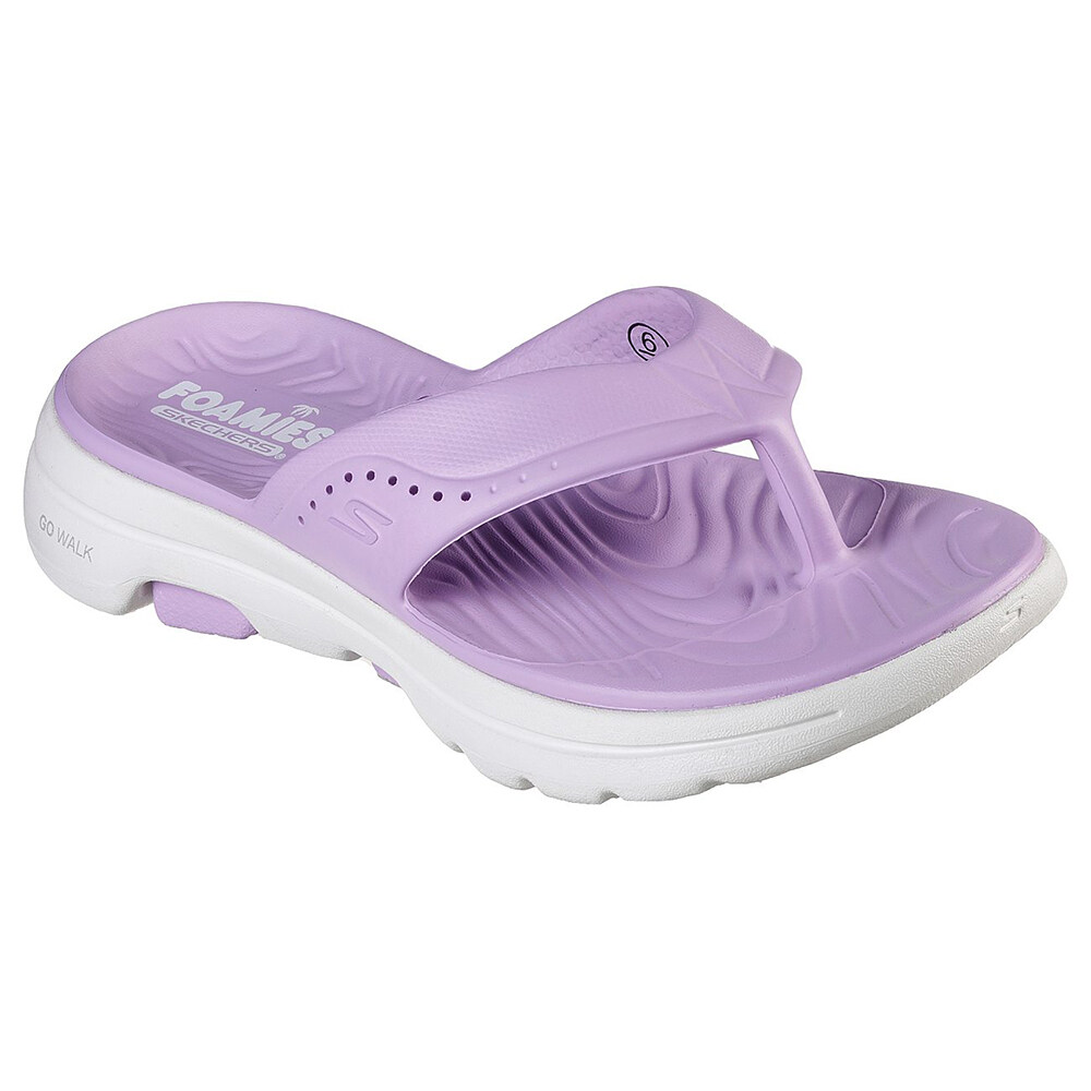 Style sunny days in easy-wearing comfort with Foamies®: Skechers GO WALK 5™. This sculpted EVA thong sandal features a lightweight ULTRA GO® cushioned midsole and high-rebound Comfort Pillar Technology® for added support.