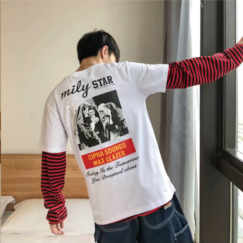 [M-3XL] t shirt Men New Korea Style Large Size Print t-shirts Clothes Fashion Tops Causal Short Sleeve Oversize Korean Style Tees