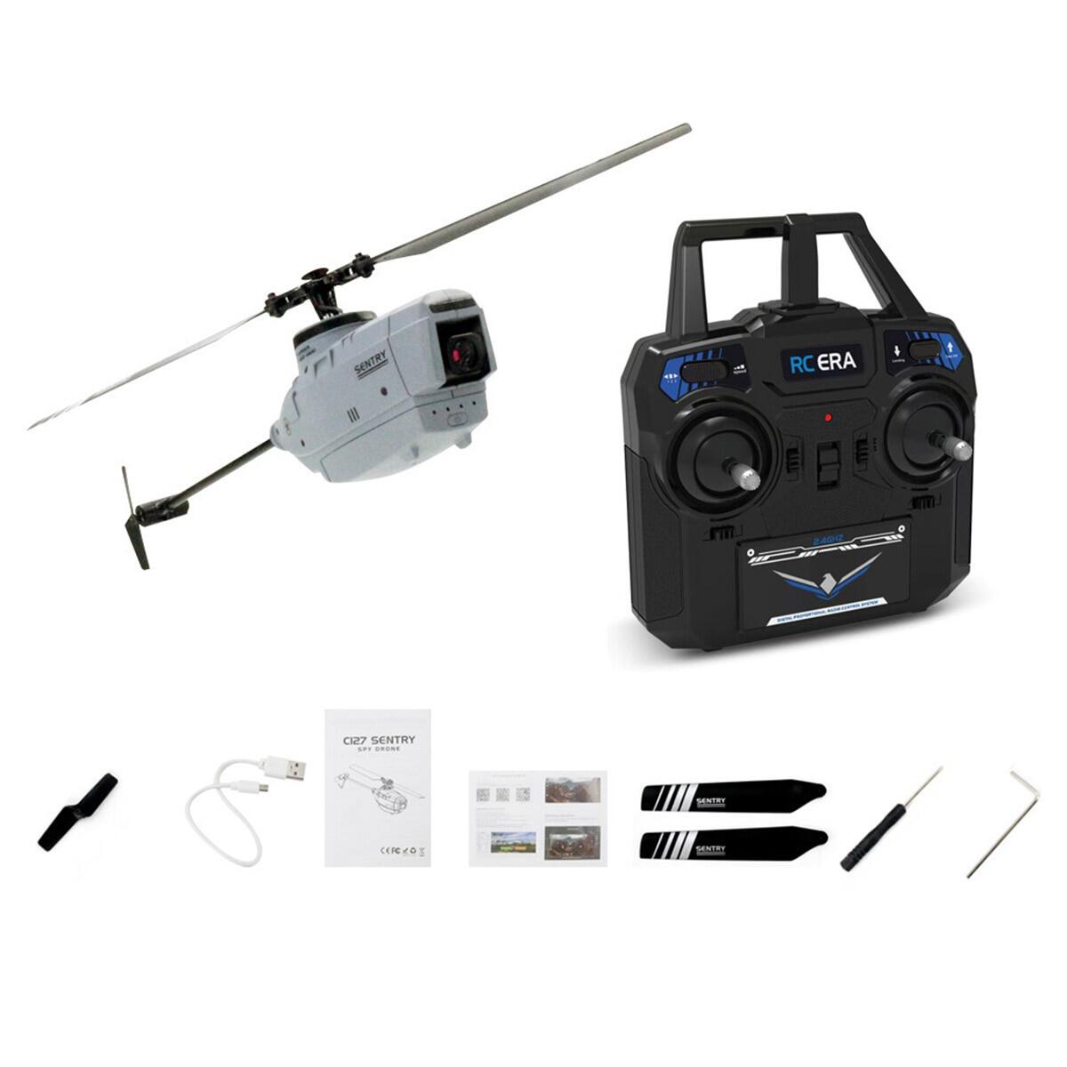 RC ERA C127 RC Helicopters 2.4G 4CH 6-Axis Gyro Altitude Hold Optical Flow Localization Flybarless RTF Sentry Helicopters With 720P Camera Drones Mode 2