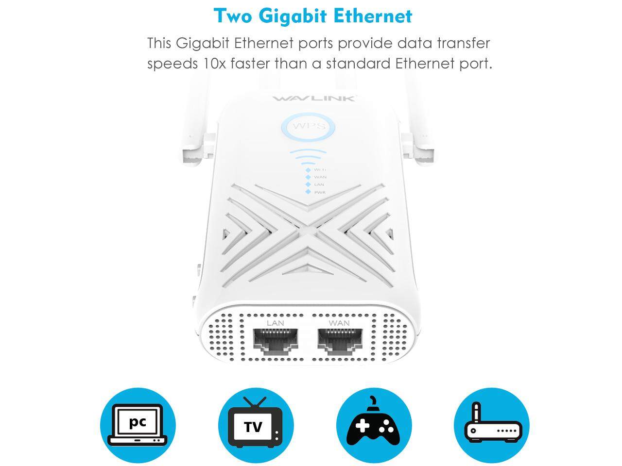 The Wavlink 579X3 expands your existing wireless network and eliminates dead spots with high performance antennas and 802.11ac technology - the next generation Wi-Fi. Dual Band technology lets you simultaneously enjoy lag-free HD video streaming, online gaming, emailing and web browsing with its speed up to N300 + AC867 without interruption. It’s well suited for large homes with multiple devices and heavy online media usage.
