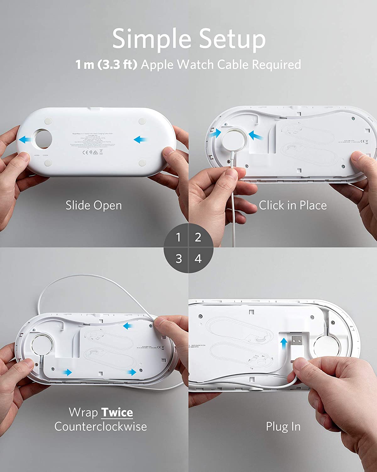 • Use an original 3.3 ft (1 m) USB-A magnetic charging cable (not included) to charge the Apple Watch.