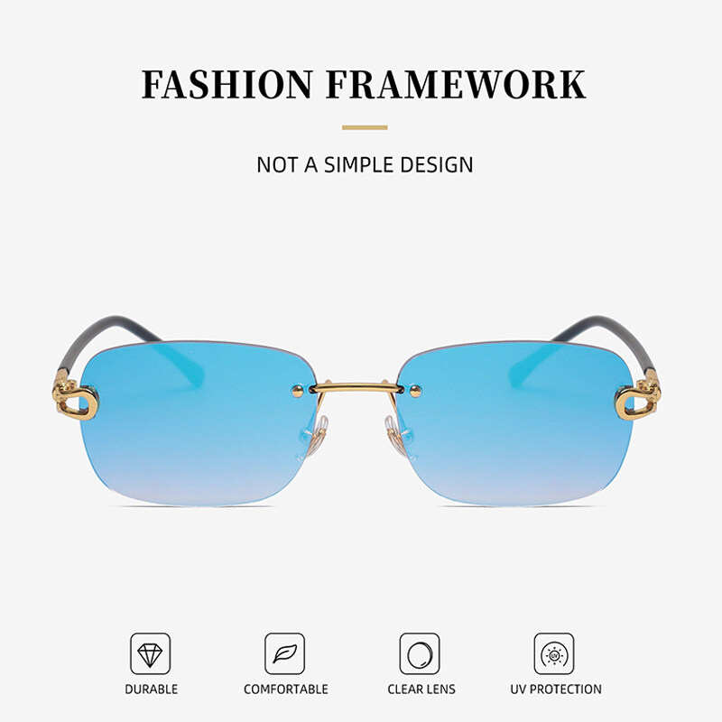 Shades for Men 2022 New Sun glasses Women's Rimless Anti-UV Sunglasses Fashion Anti-blue Light Glasses PTQ