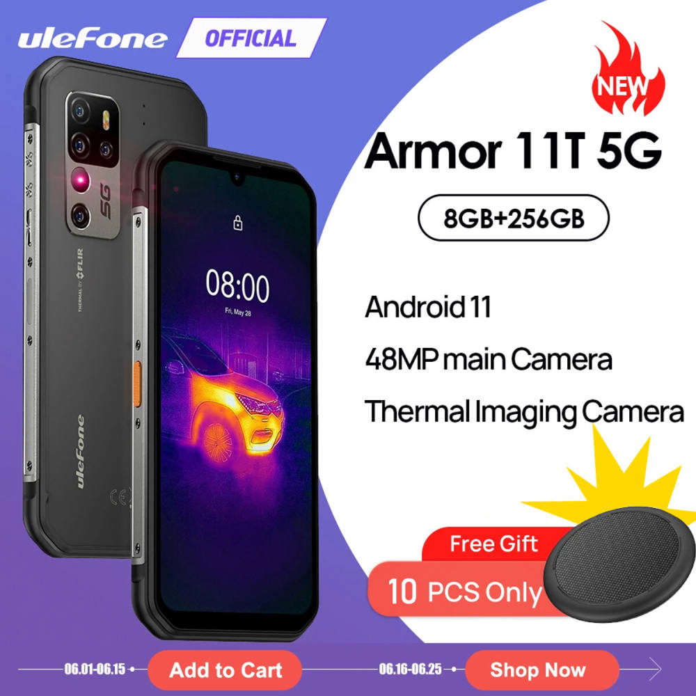 (Official shop)Ulefone Armor 11T 5G Rugged Phone, Thermal Imaging Camera, 8GB+256GB, Quad Back Cameras, IP68/IP69K Waterproof Dustproof Shockproof, Face ID & Fingerprint Identification, 5200mAh, 6.1 i