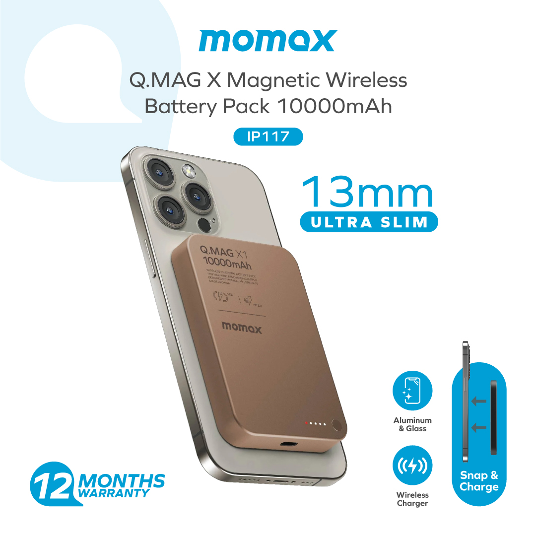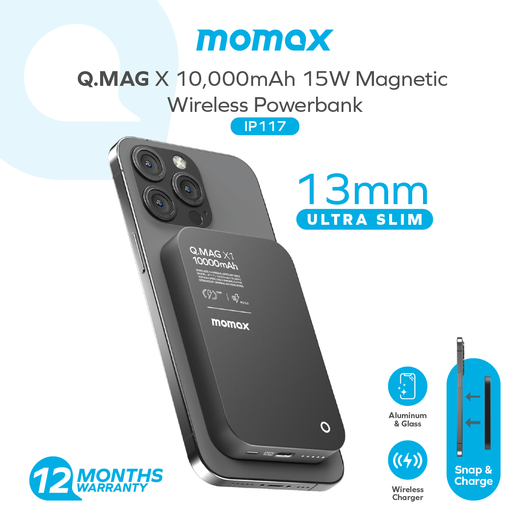 Momax [IP117] Q.MAG X1 10,000mAh 15W Magnetic Wireless Powerbank