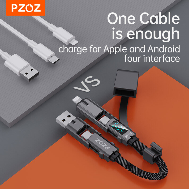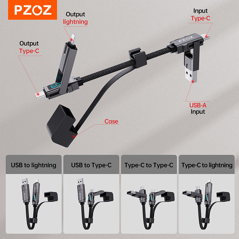 PZOZ 4 in 1 60W PD USB C Cable Digital Display Fast Charging For iPhone 15 14 13 Pro Max Xiaomi Samsung Huawei MacBook iPad USB Type C Cord Charger