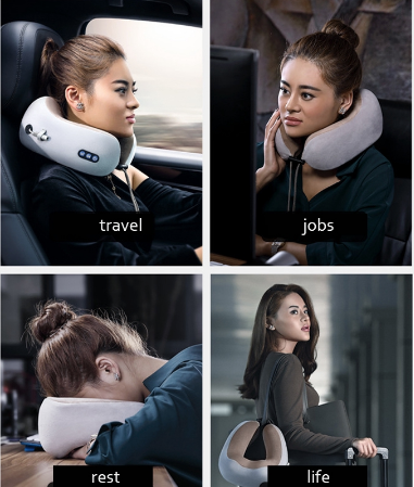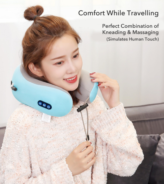 [Free Gift Bundle Set] USB Rechargeable Electric Neck Massage Pillow Kneading Vibrate Massage U-shape Head Support Massager Shoulder Cervical Muscles Pain Relief Sleep Travel Pillows For Office Home C