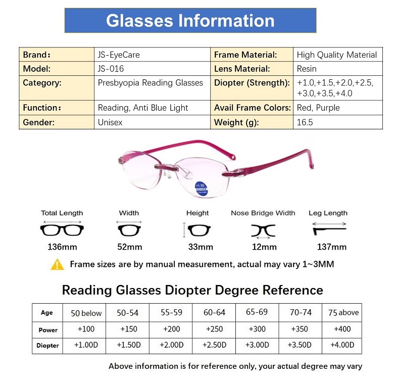 (Gift for Parents) Lady Presbyopic Presbyopia Reading Glasses Anti Blue Light Anti Eyestrain (JS-016)