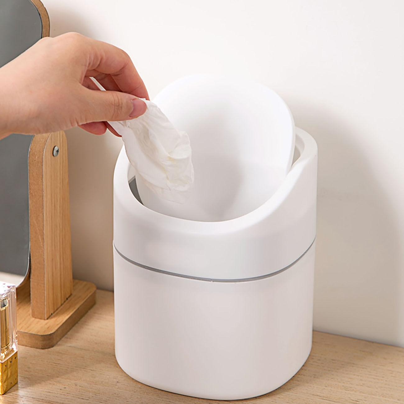 Homenhome Desktop Trash Bin with Lid Office Mini Small Wastebasket Household Bedside Storage Bin Trash Can