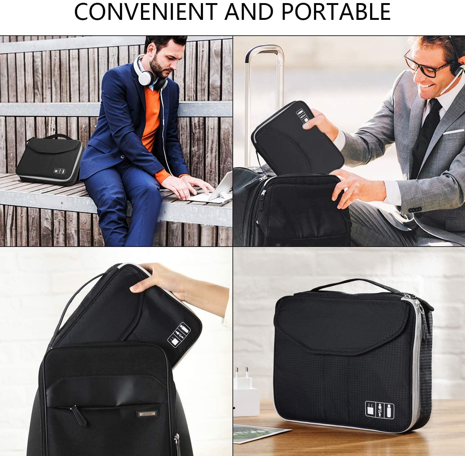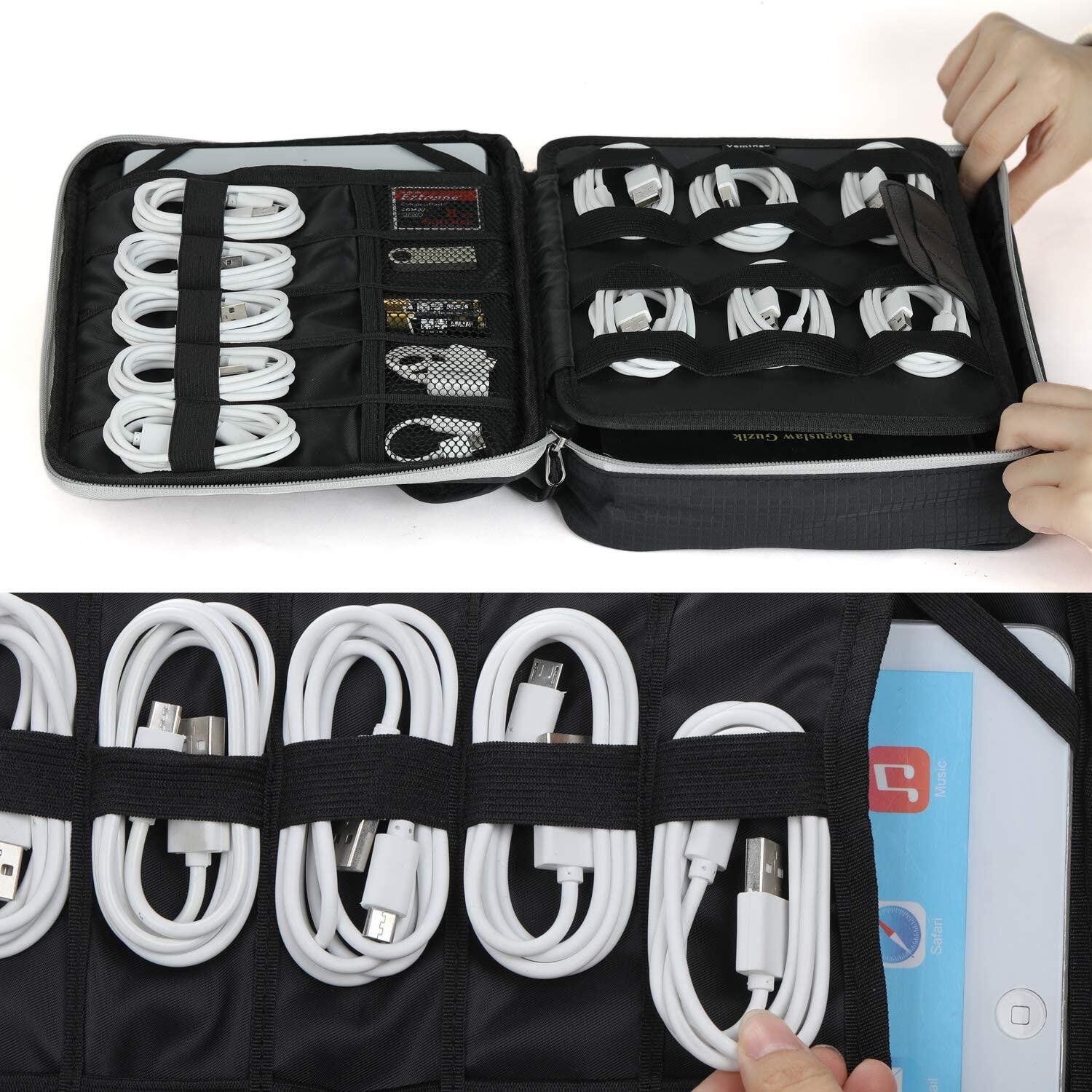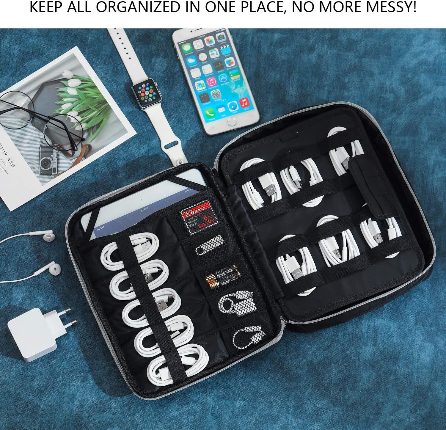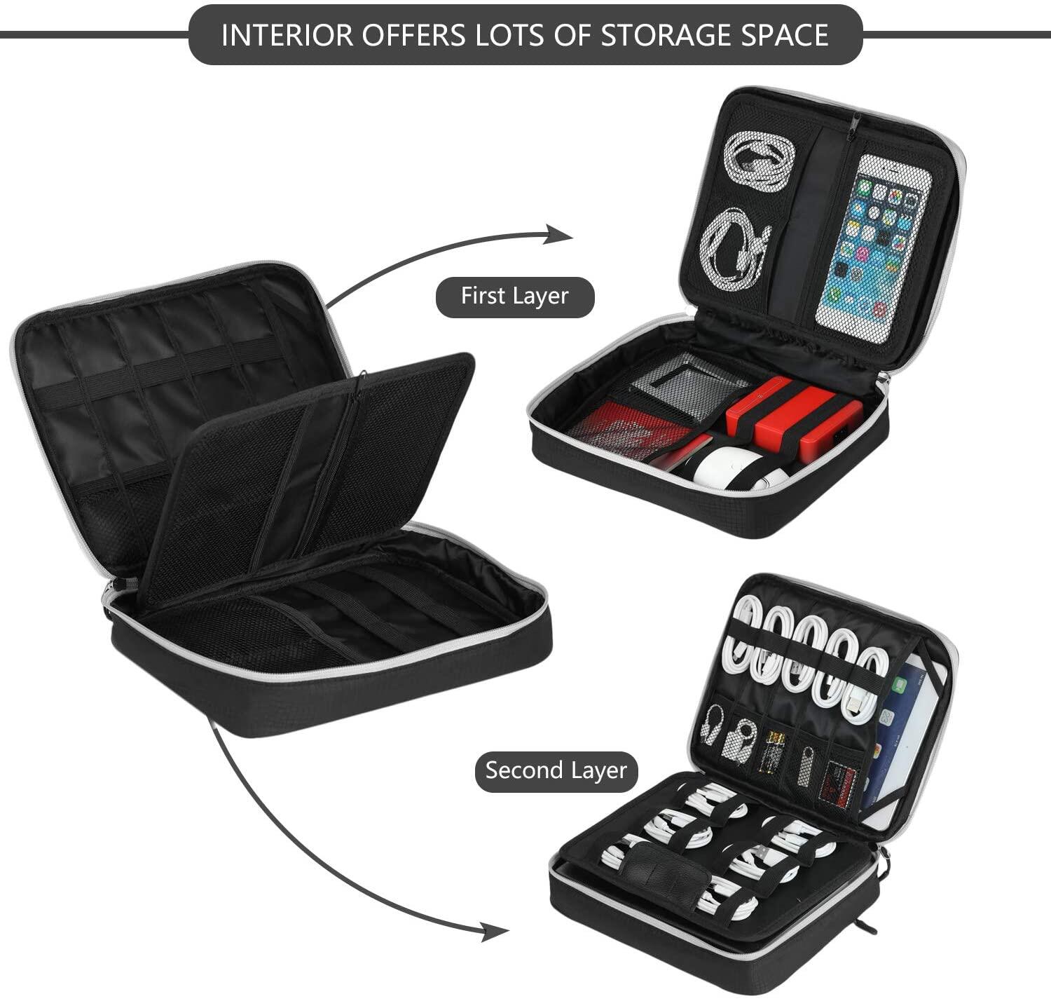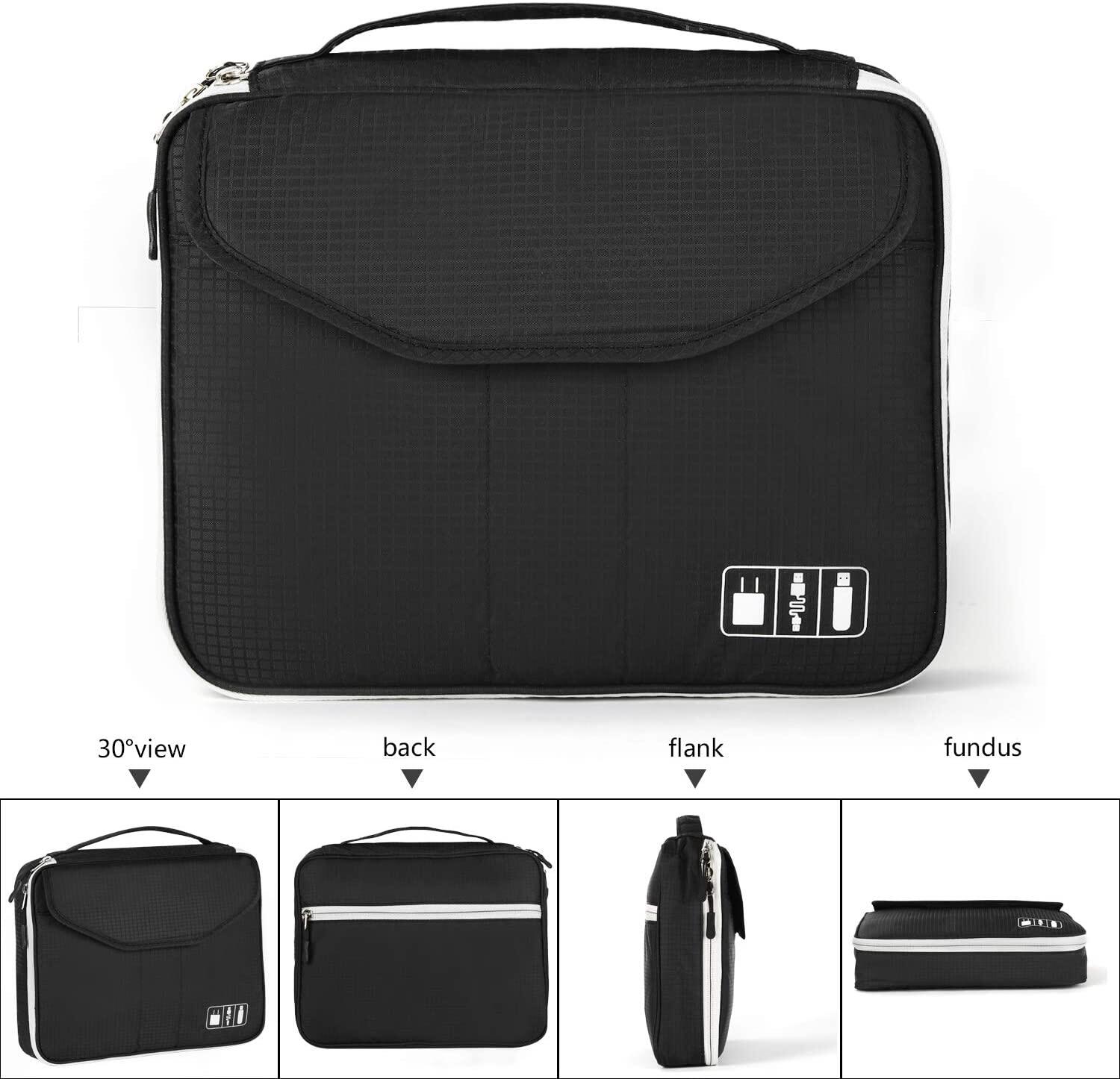 Electronic Organizer, travel Organizer Bag Electronic Accessory Case Cable Organizer Bag Double Layer for USB Cables, Charger, Phone, E-book Kindle, iPad or Tablet(up to 9.7’’)