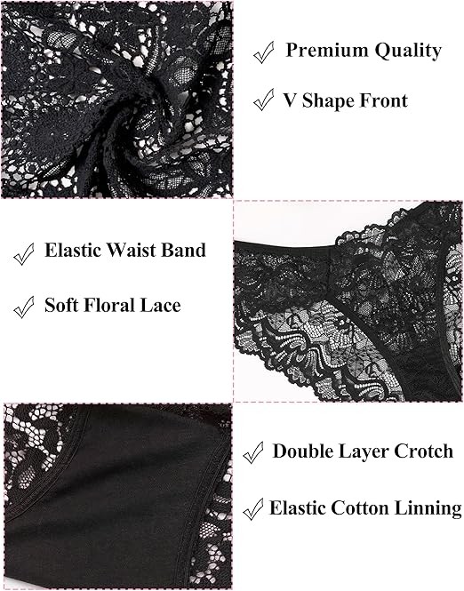 Avidlove Women's Lace Lingerie Sexy Low-Rise Panties Breathable Bikini Briefs 3-6 Pack