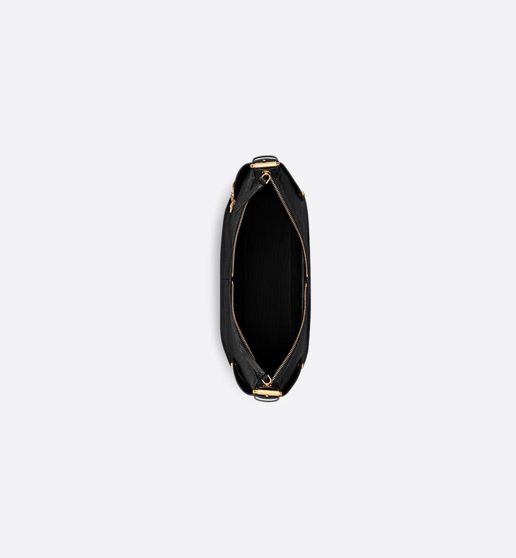 The new Dior Voyage bag from the Cruise 2026 collection features soft lines and refined details. This exquisite bag is expertly crafted from black grained calfskin and embellished with Flat Macrocannage stitching, a reinterpretation of the house's signature motif. The supple silhouette is accented with a DIOR charm in antiqued gilt metal and accented with premium leather for added structure. A two-way zipper closes the main compartment for easy access, while an adjustable top handle with a buckle allows this medium-sized bag to be carried on the shoulder as an everyday accessory.