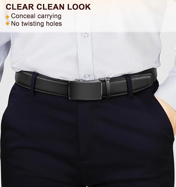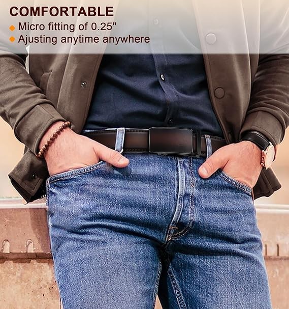 EASY ADJUSTMENT--Equipped with a unique ratchet buckle design,our belt can be effortlessly adjusted with one hand. No need to unbuckle,exude style and confidence anytime,anywhere;
