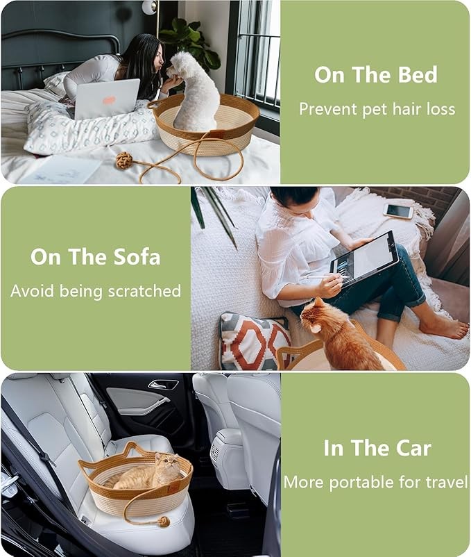 • Comfortable & Safety: Crafted with cotton and linen ropes, ensuring it is free from formaldehyde and odors. It can be conveniently placed on beds or sofas, providing a comfortable and reassuring space for you and your furry friend.
